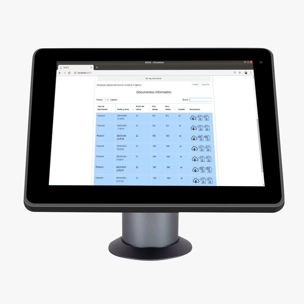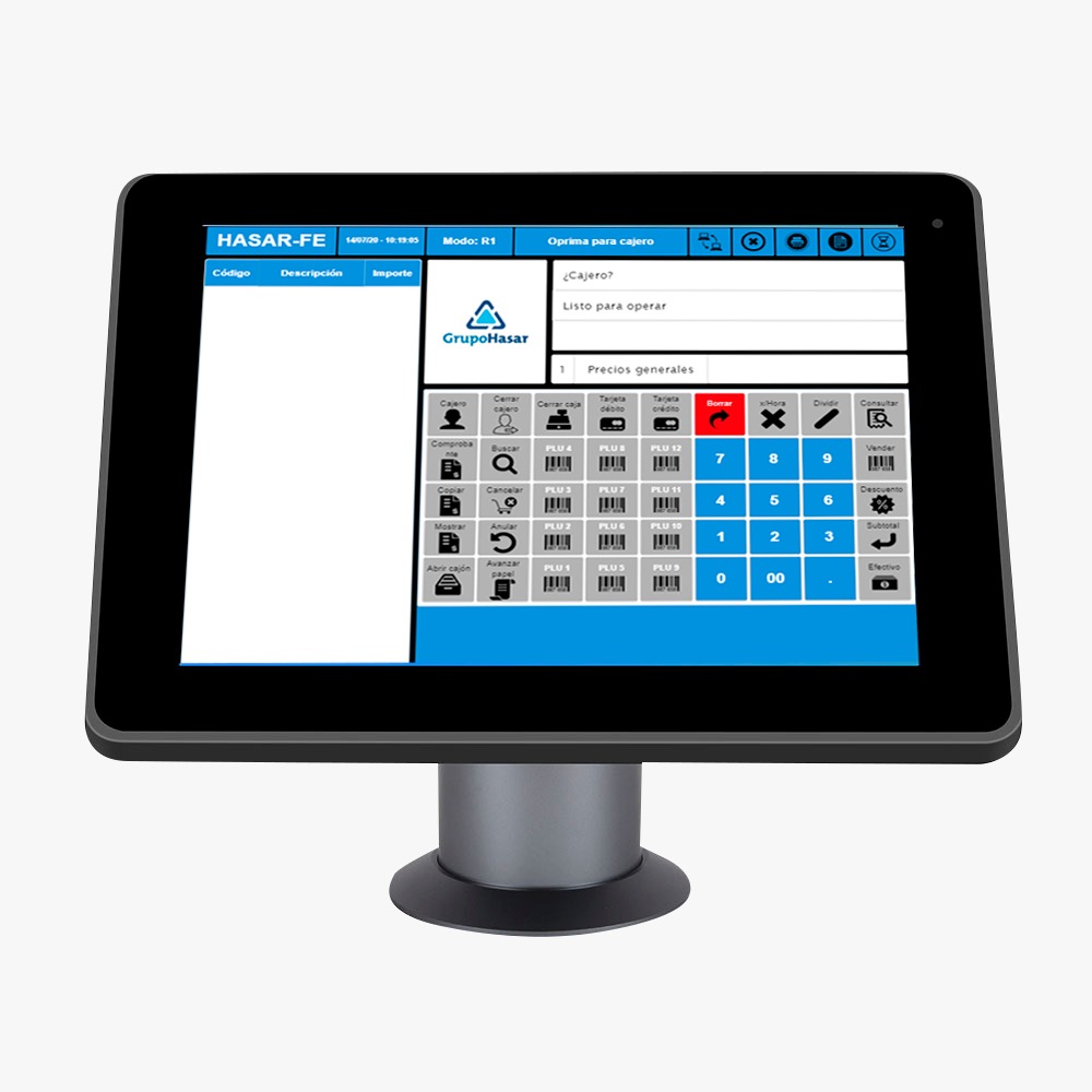 Características: - Terminal de 9.7" - Diseño y estructura compacta y modular. Ideal para mostradores congestionados. - Base de aluminio giratoria de 360 grados. - Diseño ajustable del ángulo de visión de 120 grados. - Panel táctil capacitivo multipunto. - Opcional de lectora de MSR integrado. - Gran cantidad de Puertos disponibles. Permite la factura electronica.